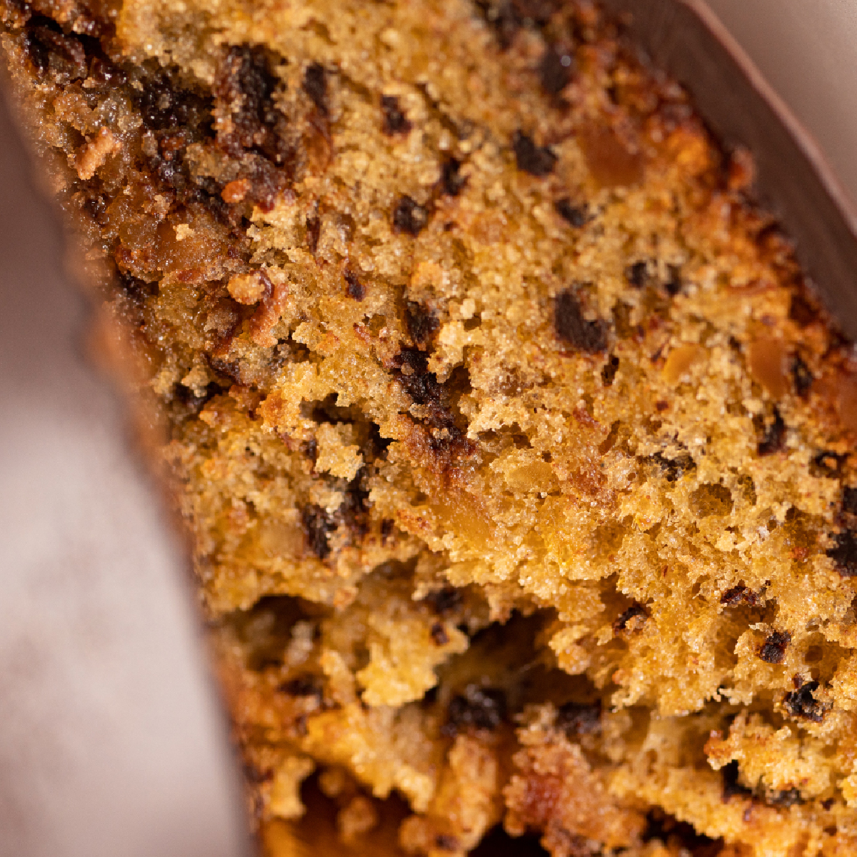 Ingredienti: uovaburro di latteria, farina di frumento tipo 00, mandorle 11%, zucchero,  cioccolato fondente (semi di cacao, zucchero, burro di cacao, aroma vaniglia.  Emulsionante lecitina di soja), lievito chimico, aromi (vaniglia, arancia).  Copertura: Pasta al cioccolato fondente 25% (Grasso vegetale, cioccolato in polvere 25% (zucchero, Cacao, cacao min. 35%), zucchero, cacao magro in polvere, latte scremato in polvere, siero di latte in polvere, Emulsionanti: Lecitina di soja, aromi).